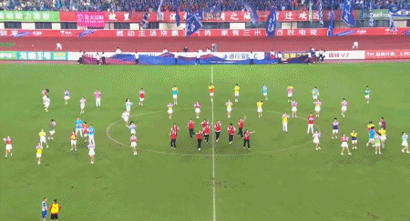 双方球员入场,比赛马上开始