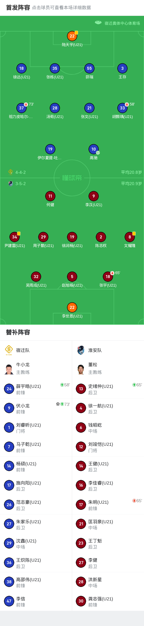 开云-宿迁队2-0淮安队,高驰点射,伏小龙建功