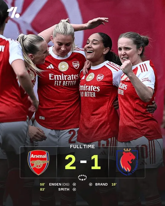 阿森纳女足2-1逆转里昂占得欧冠半决赛先机,史密斯破门